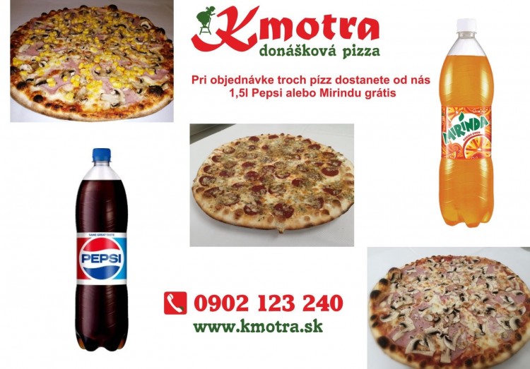 Reštaurácia Donášková pizza Kmotra Sme malá rodinná pizzéria. Nepečieme na kvantitu. Záleží nám na kvalite a spokojnosti našich zákazníkov. Preto sa venujeme len príprave a pečeniu pizze. Každá jedna pizza je pečená a pripravená poctivo z kvalitnej múky, pravej Mozzarelly, čerstvej zeleniny a čerstvých mäsových výrobkov. Aj napriek tomu, že chutnému a omamnému jedlu s názvom pizza, siahajú korene až do krásneho Talianska, patrí medzi najobľúbenejšie na celom svete. Niet sa ani čomu čudovať. Dobre urobená pizza padne vhod v každú dennú či večernú hodinu.Na to, aby ste si na pizze pochutnali, je dôležité objednať si tú najlepšiu. My vám vieme sľúbiť, že ak od nás ochutnáte aspoň jednu, inú už chcieť nebudete. Rozvoz pizze je veľmi rýchly a už o chvíľku ju máte u seba na stole. Samozrejme, ešte teplú. A kto vlastne sme? Aby sme sa vám predstavili a lepšie ste nás spoznali, povieme vám pár informácií. Sme donášková pizza Kmotra, ktorá sídli v Banskej Bystrici, v mestskej časti Sásová a ponúkame tú najlepšiu pizzu, ktorú si zamilujete. Ak ste z blízkeho okolia, určite neváhajte a objednávajte si! Pizzu si však môžete objednávať aj z okolitých miest, ktoré sú trochu ďalej. Podmienkou je len určitá hodnota objednávky. Do vzdialenejších obcí máme symbolický príplatok za dovoz, ale len v prípade online objednávok. V ponuke toho nájdete naozaj veľa, od základných typov pizze ako je Margherita či Šunková pizza až po zaujímavé typy ako Ázia Kanton ,Sásovská, Vidiecka, Gazdovská, či pizza Valibuk . Spolu vám ponúkame až 32 druhov pízz, z ktorých si určite vyberiete presne tú, ktorá vám chutí. Môžete však vyskúšať aj niečo nové a možno nájdete svoj nový obľúbený druh. Pri objednávaní pizze však nezabudnite ani na nejaké to osvieženie v podobe dobrého nápoja a na chuťovky v podobe osúchov. Dostali ste práve chuť na niečo dobré? Neváhajte nás kontaktovať! Počas piatku a soboty vám prinesieme pizzu rovno aj do postele, keďže máme otvorené až do 23.00.Donášková pizza Kmotra je jednoducho pizza, o ktorej už dávno snívate. Perfektná chuť, skvelá cena a rýchle dodanie sú našimi výhodami, vďaka ktorým budete určite spokojní. Okrem iného, naša pizza je v štandarde najväčšia v Banskej Bystrici.