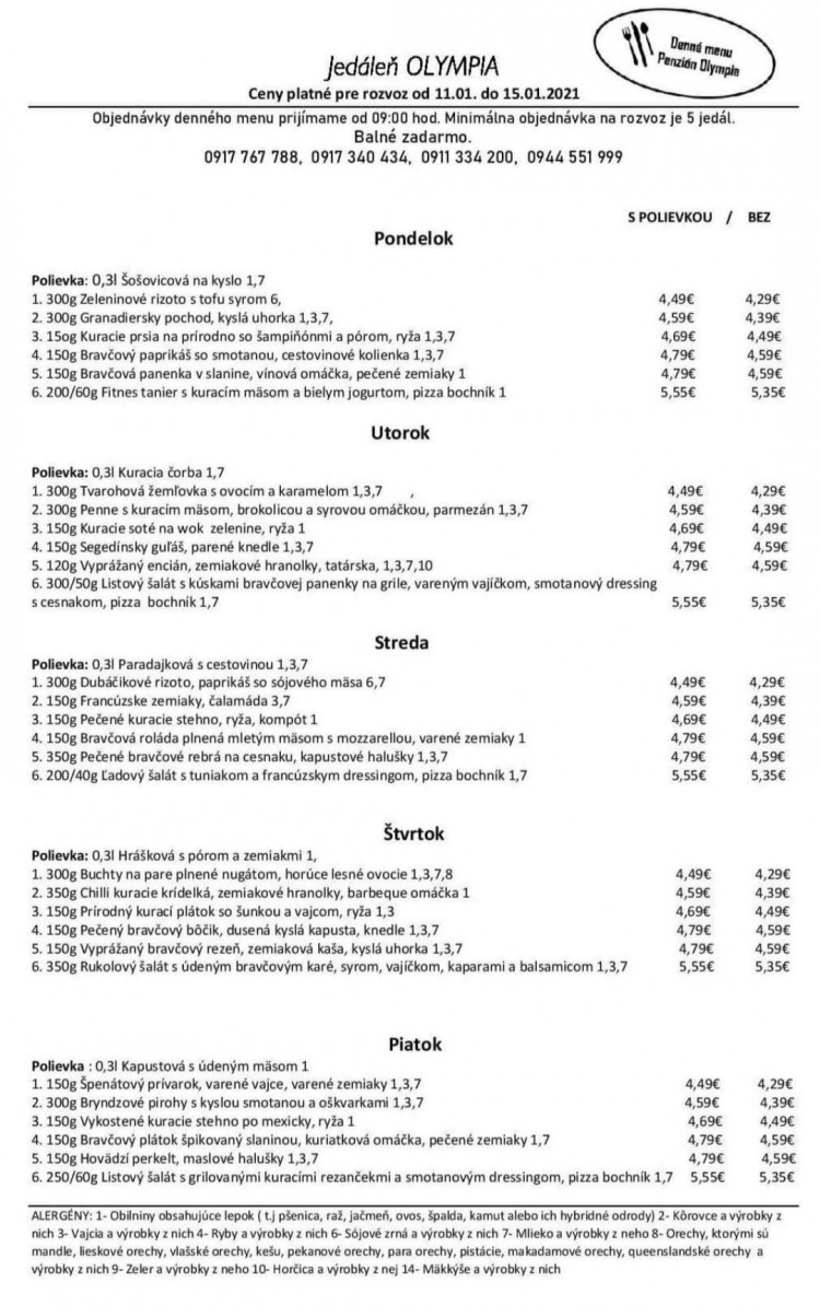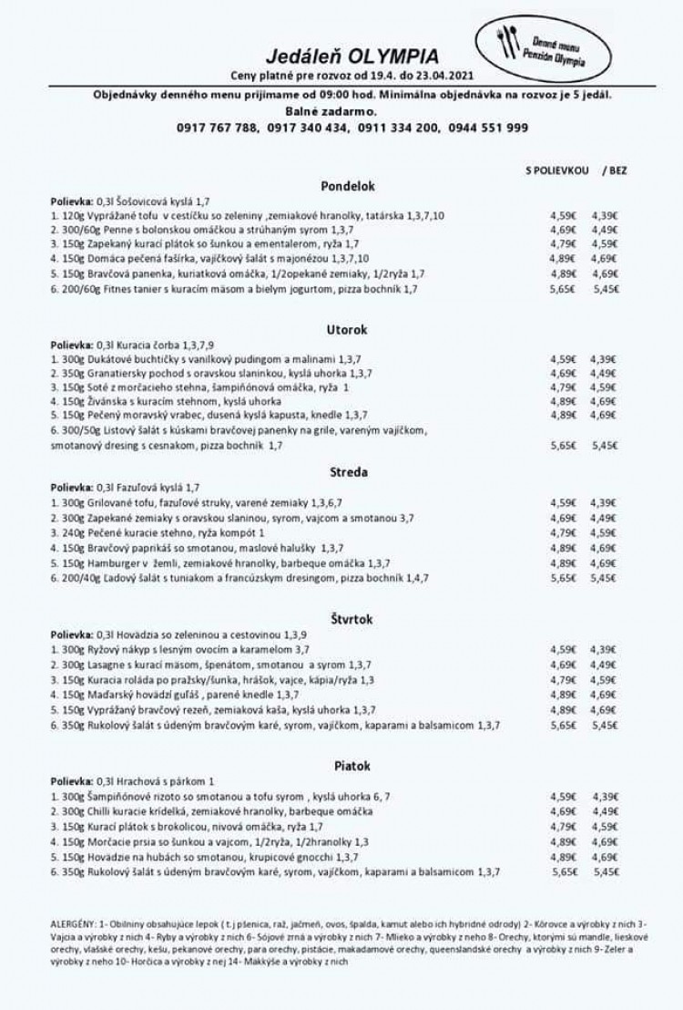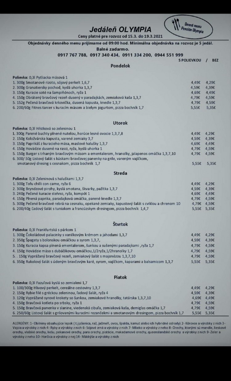 Objednávky od 9-14h rozvoz alebo jedlo so sebou prevziať v Olympii