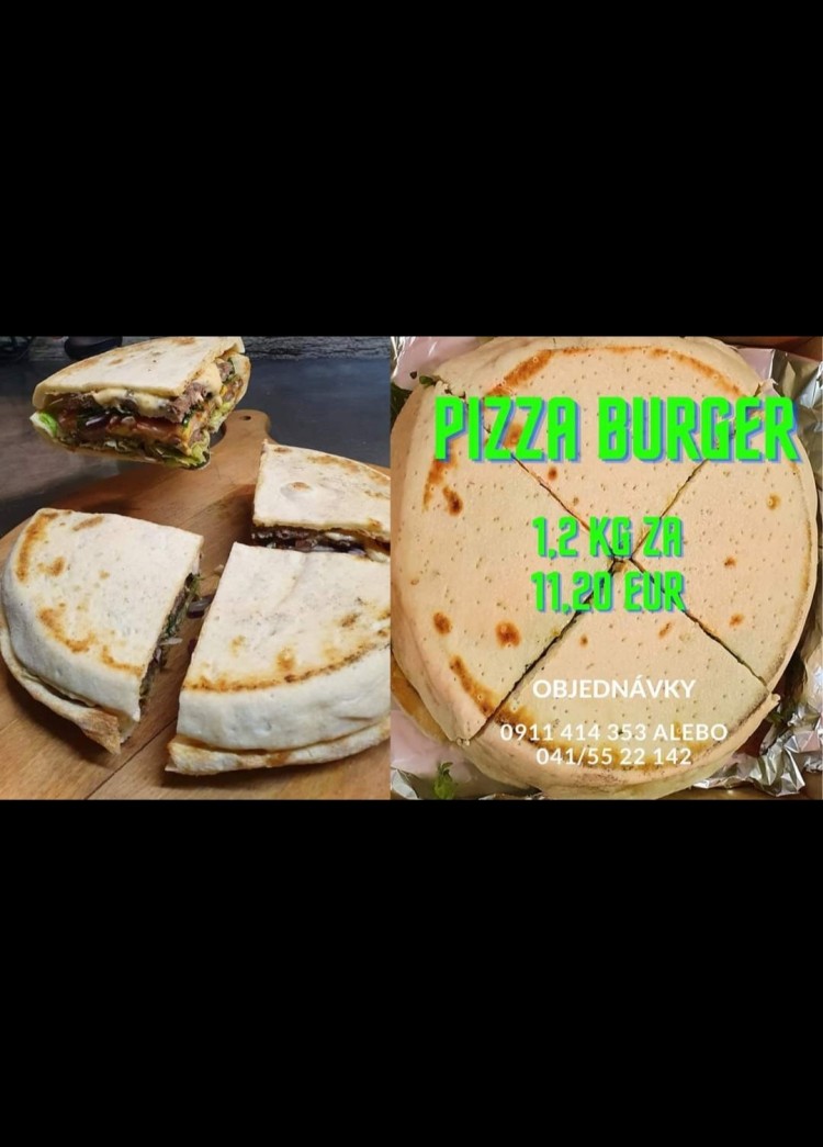 Predstavujeme vám našu chutnú naozaj plnokrvnú novinku. Pizza burger. Lahôdka váži 1,2 kg v cene 11,20 EUR.