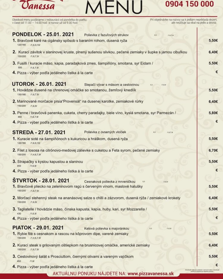 Vanessa pre vás pripravila opäť niečo nové - jedlá v novom štýle, krajší interiér, lepšie služby. Naša pizzeria sa nachádza v Čadci v priestoroch supermarketu Tempo, kde sa snažíme už viac ako 14 rokov robiť tú najlepšiu pizzu a jedlá pre každého z vás. Ponúkame vám širokú ponuku jedál a nápojov pripravených z čerstvých surovín, ktoré si môžete vychutnať u nás v pizzerii, kde vás radi privítame. V prípade vášho záujmu vám ich radi dovezieme až domov pomocou našej roznáškovej služby, ktorou zabezpečujeme rozvoz nie len v Čadci ale i v širokom okolí.