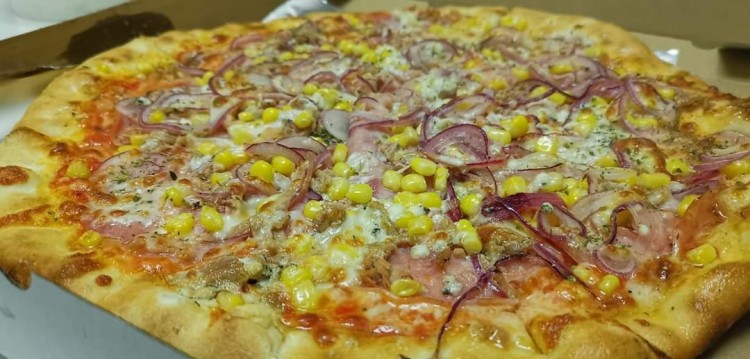 ???v ponuke od dnes 30.3.2021 výborná pizza so šunkou, tuniakom, nivou, mozzarellou, kukuricou a cibuľou?