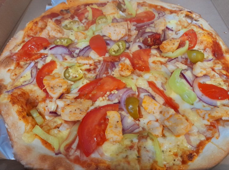 ( pretlak, syr, kurací gyros, paprika, cibuľa, feferóny, paradajka )