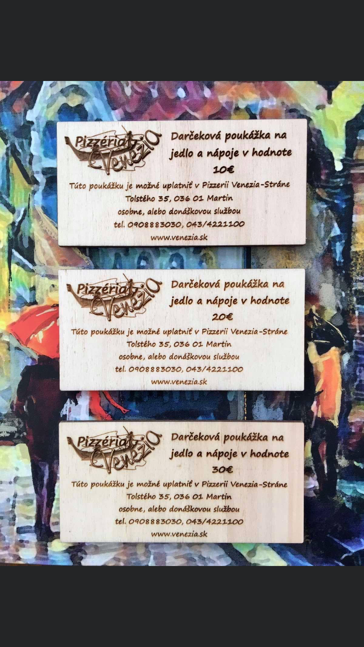 Poteš svojich blízkych darčekom pod stromček alebo len tak pre radosť a zároveň pomôž prekonať ťažké časy svojej obľúbenej reštaurácie kúpou darčekových poukážok v sume 10, 20, 30€. Poukážky dovezieme bezplatne priamo na adresu alebo si ich môžete vyzdvihnúť u nás v reštaurácii.