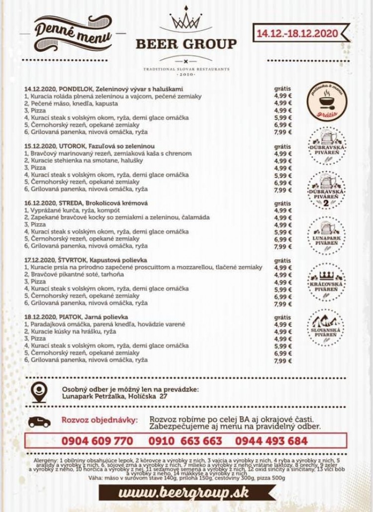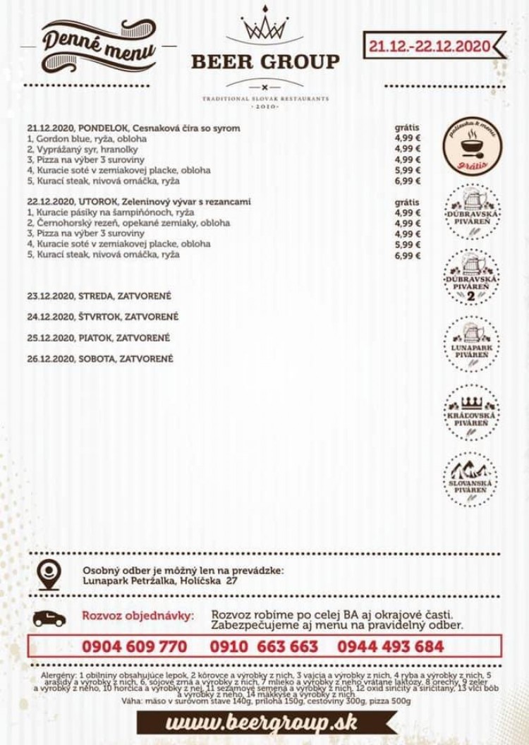 Denne menu od 21.12 do 22.12 .Rozvoz po celej Ba a okoli . 0910 663 663