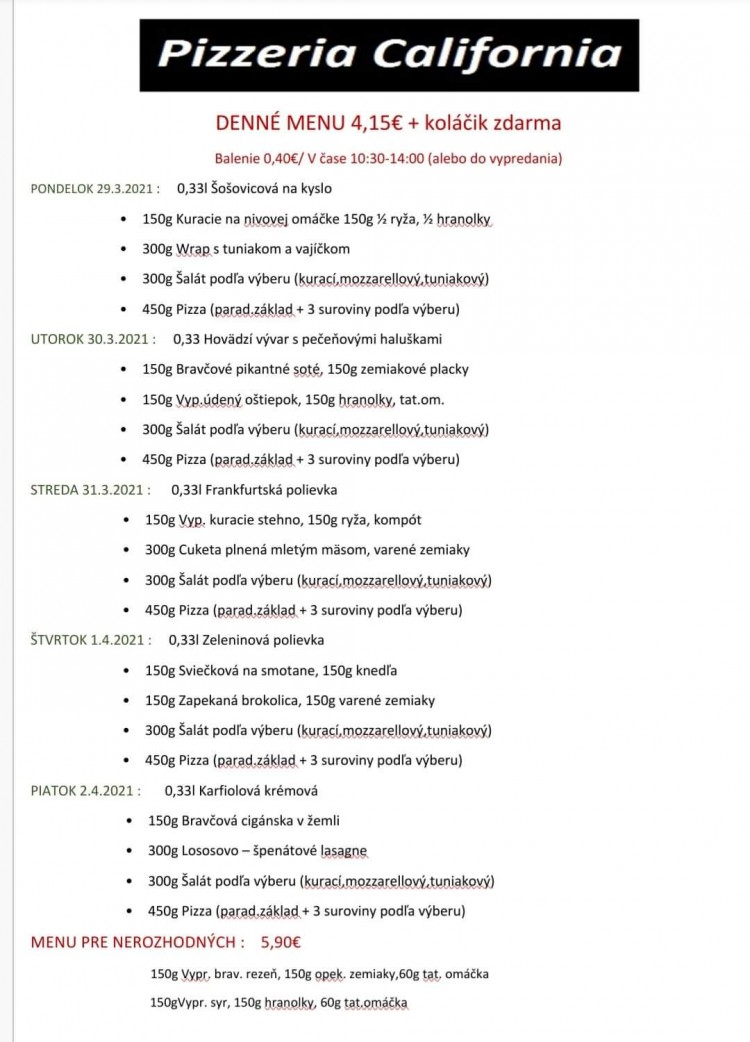 Pizzeria & Reštaurácia California bola ohodnotená používateľom Michal