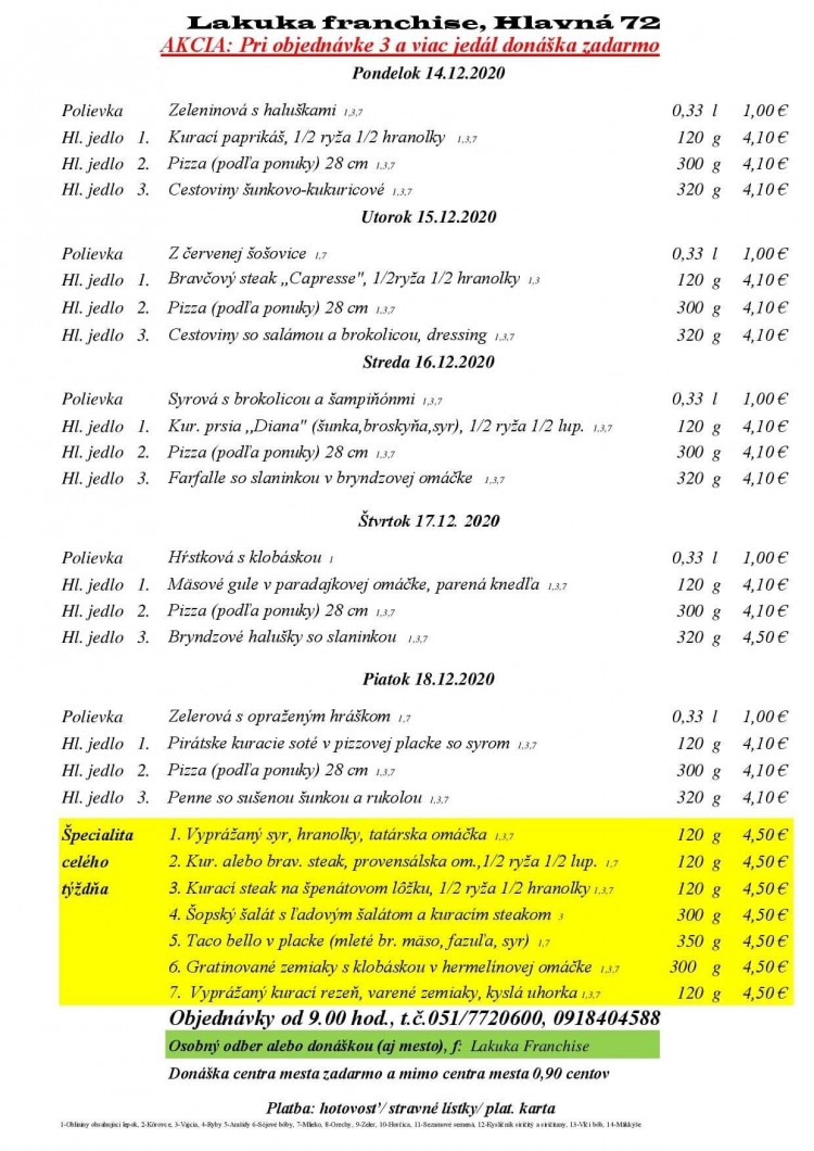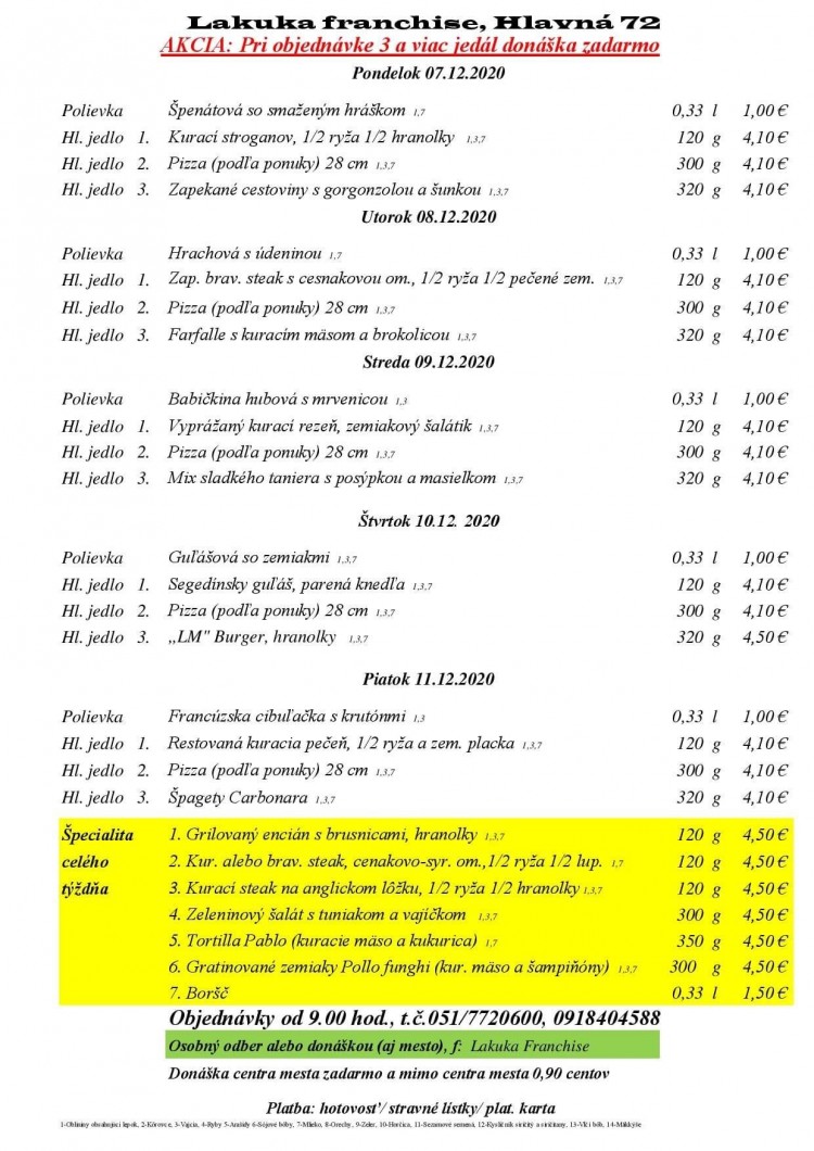Krásny týždeň milí priatelia a s ním aj obedové menu. Prajeme dobrú chuť a tešíme sa na Vašu návštevu a nezabúdajte, že máme už aj donášku ???