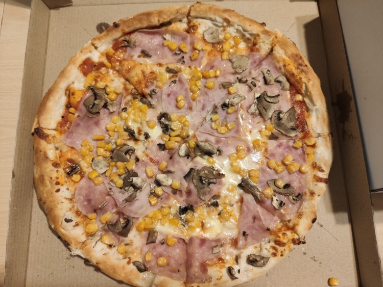 Veľmi chutná pizza, asi top z mesta.... donáška v piatok večer za primeraný čas, milí personál