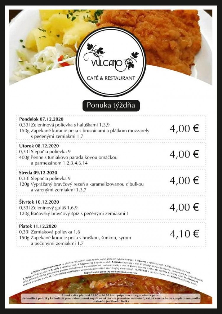 Vážení zákazníci, obedová ponuka počas 50. týždňa je nasledujúca