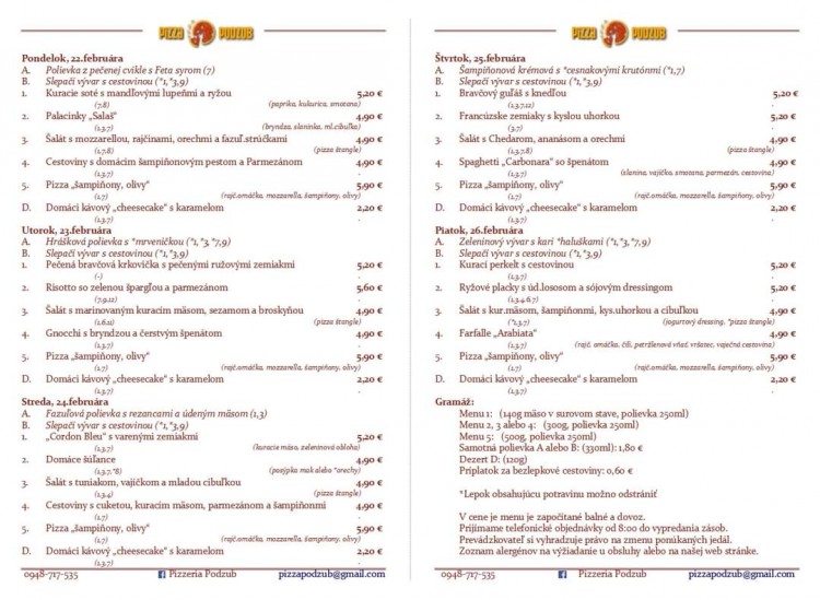 PODZUB MENU www.pizzapodzub.sk