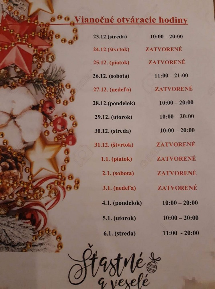 OTVÁRACIE HODINY POČAS VIANOČNÝCH SVIATKOV?