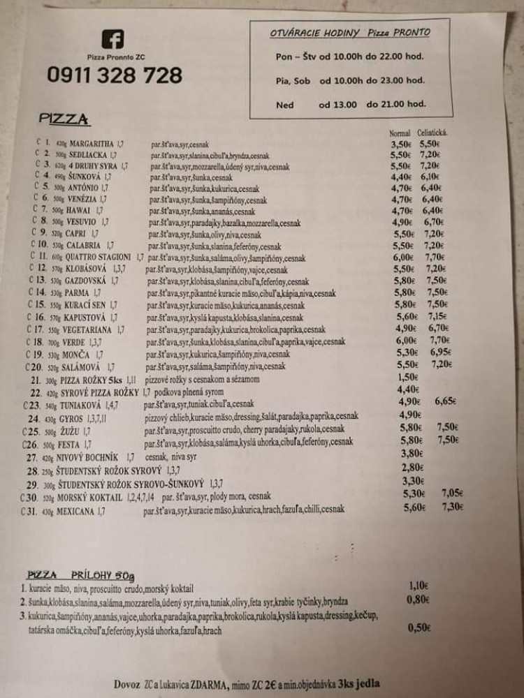 Pizza PRONTO Žarnovica bola ohodnotená používateľom Jozef
