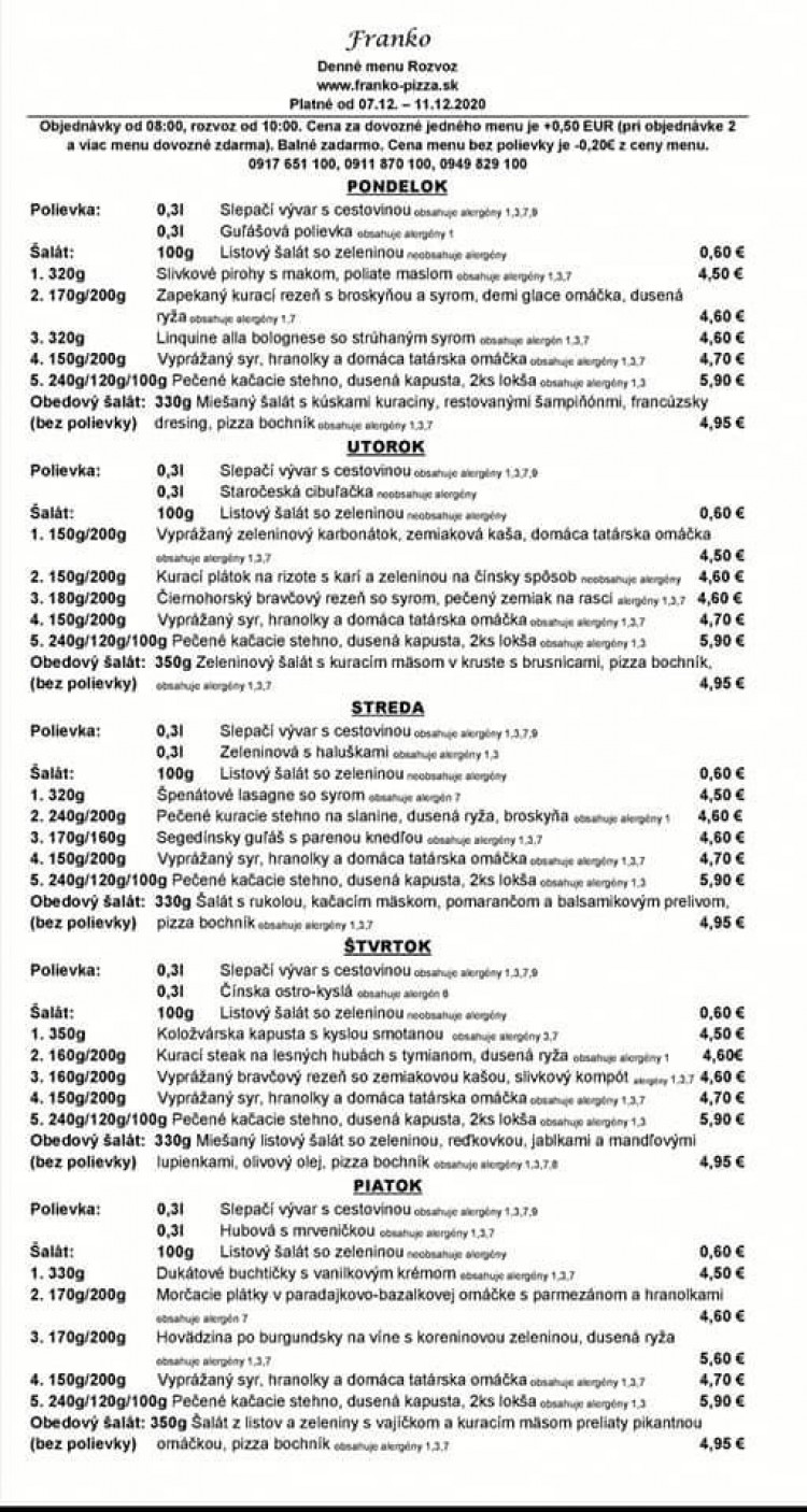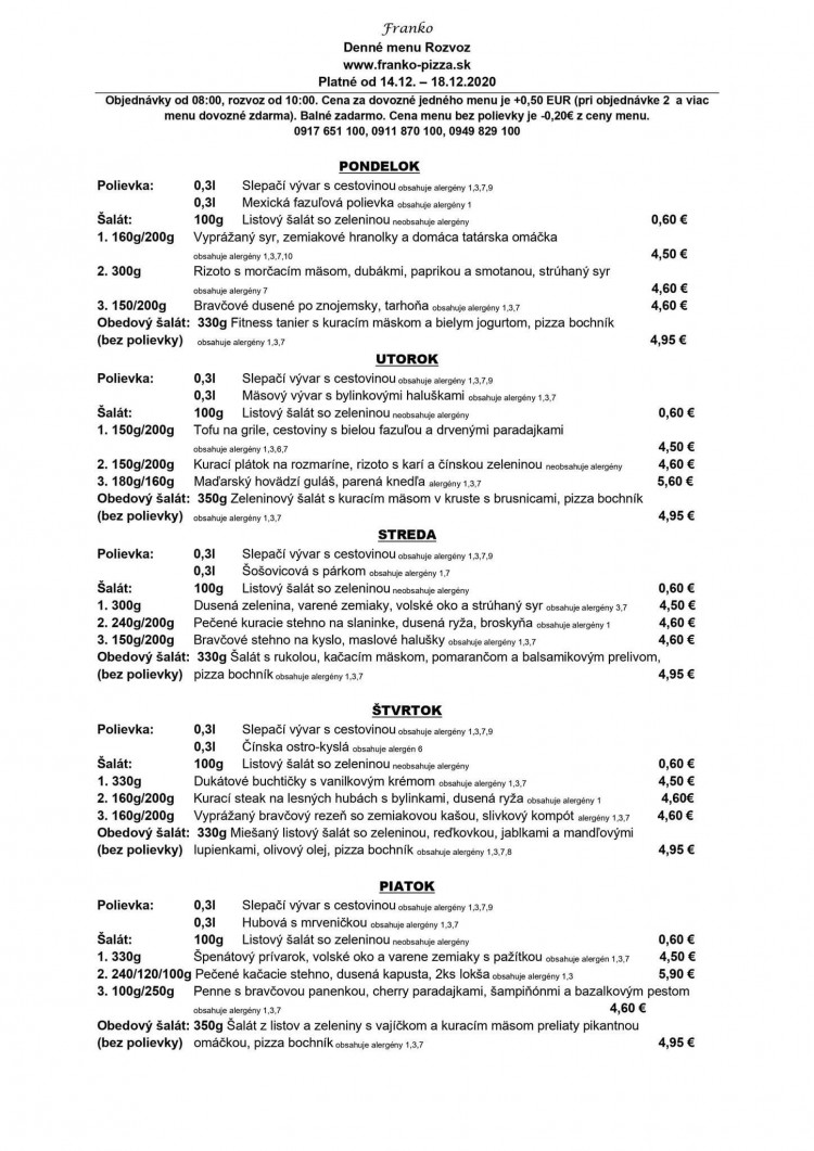 Zvolen 14.12.- 18.12. denné menu a rozvoz ??? aj môžete od 10.00 hod prevziať na terase jedlo so sebou